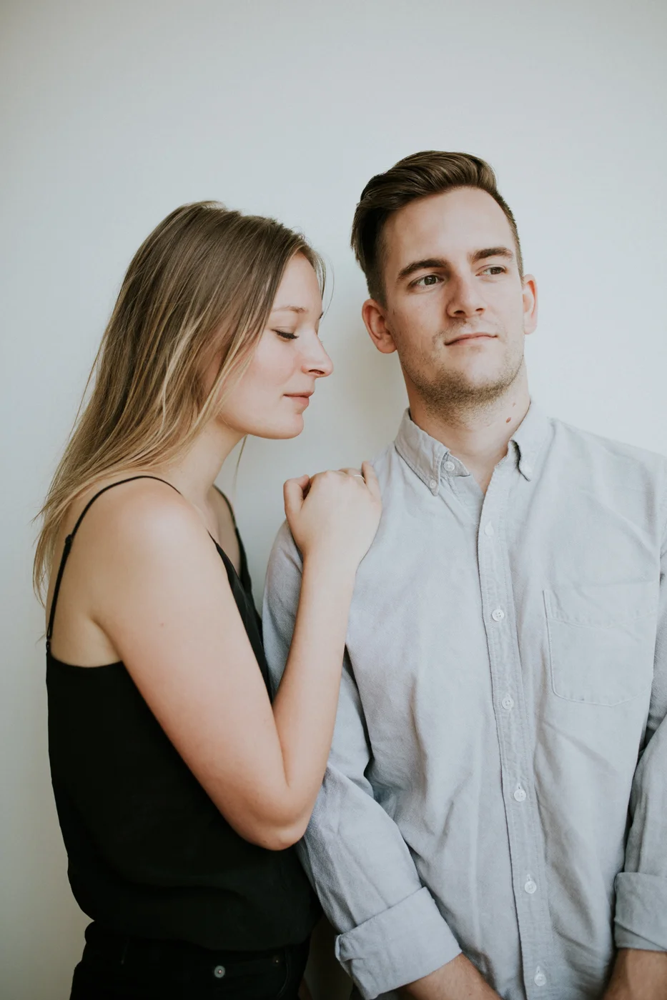 It's so great to push yourself and get out of your comfort zone, especially as a photographer I think! Jenna wanted to do a natural light studio session at the co-working space she's a co-owner of (if you are in Columbus, Ohio + are looking for a studio space to rent or a desk to get work done at, check out Zurïe !) this session was so much fun and so challenging at the same time, but I definitely love the outcome + I really love these two! Can't wait for them to get married in a short few months!
